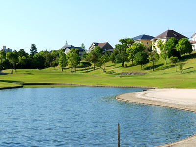 周辺には住宅が点在しており、アメリカのカリフォルニアを思わせる開放感あふれるテイストを感じさせます。ドラコン推奨ホールは、フェアウェイ左サイド狙いのティーショットが決め手となる6番とティーショットを右サイドに決めれば2オンも狙える15番。ニアピン推奨ホールは、軽い三段ウェーブグリーンが特徴的な3番とグリーンの手前右側の池が攻略のポイントとなる12番です。 アウトコースの1番は、コース内最長のロングホールで、広めのフェアウェイでは開放感を存分に味わえます。やや打ち下ろしの3番ホールでは、ピンポジションによる戦略的な距離計算がベストスコア更新の大きなカギとなります。