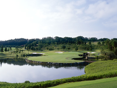 丘陵コースとなっており、OUTコースは緩やかな打ち下ろしでスタートしていきます。各ホールそれぞれに個性的だが、最も印象的なのは水面にグリーンが大きく張り出している8番ショートコースです。スコアメークのカギはロングホールを上手くまとめ、3番・6番ともに落ち着いてプレーされることです。INコースは、豪快に打っていけるホールもありますが、微妙なライの変化を感じる繊細さが求められるホールもあります。池絡みのホールが続く15番・16番ではプレッシャーを跳ね返す大胆さも必要です。