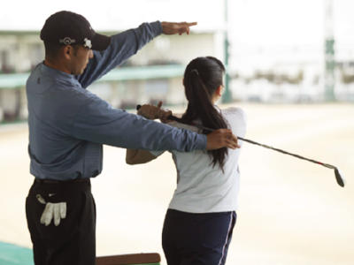 レッスンコースは、ワイドなスケールの練習場で、基本から実戦までしっかりサポート。